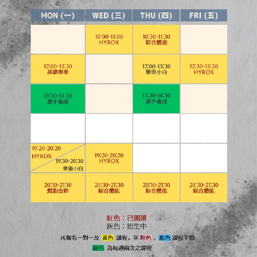 機械皮拉提斯、肌力與體能訓練、綜合體能、基礎舉重、有氧及瑜珈等專屬教室。